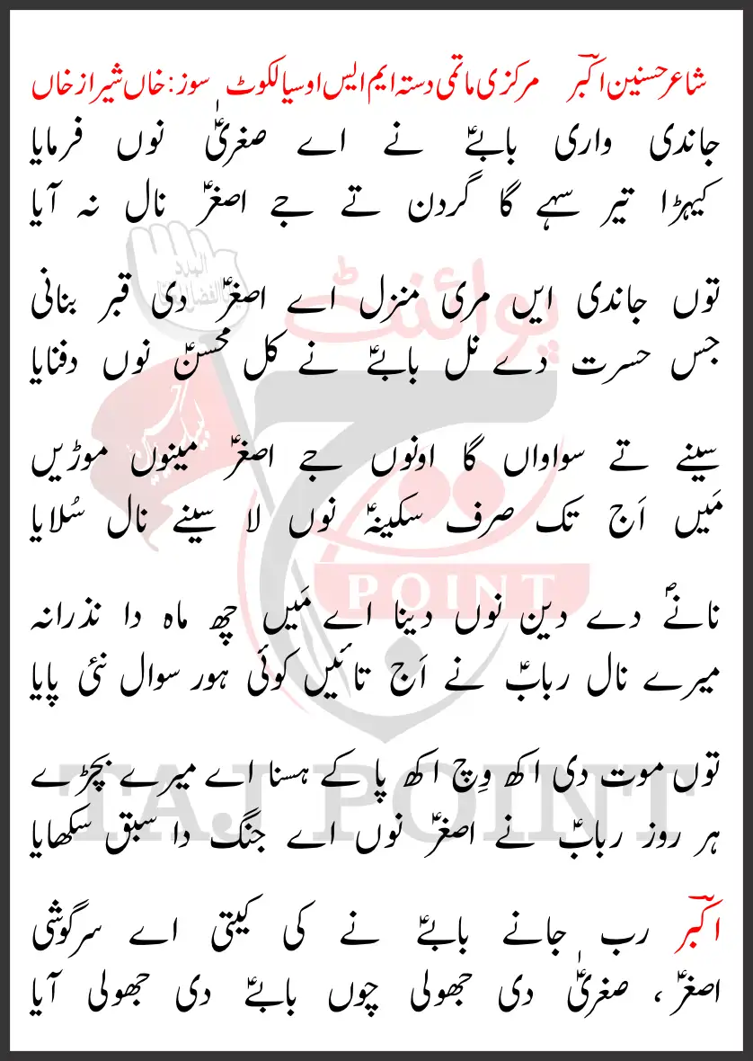 Har Roz Rubab Ne Asghar Nu Aye Jang Da Sabaq Sikhaya.