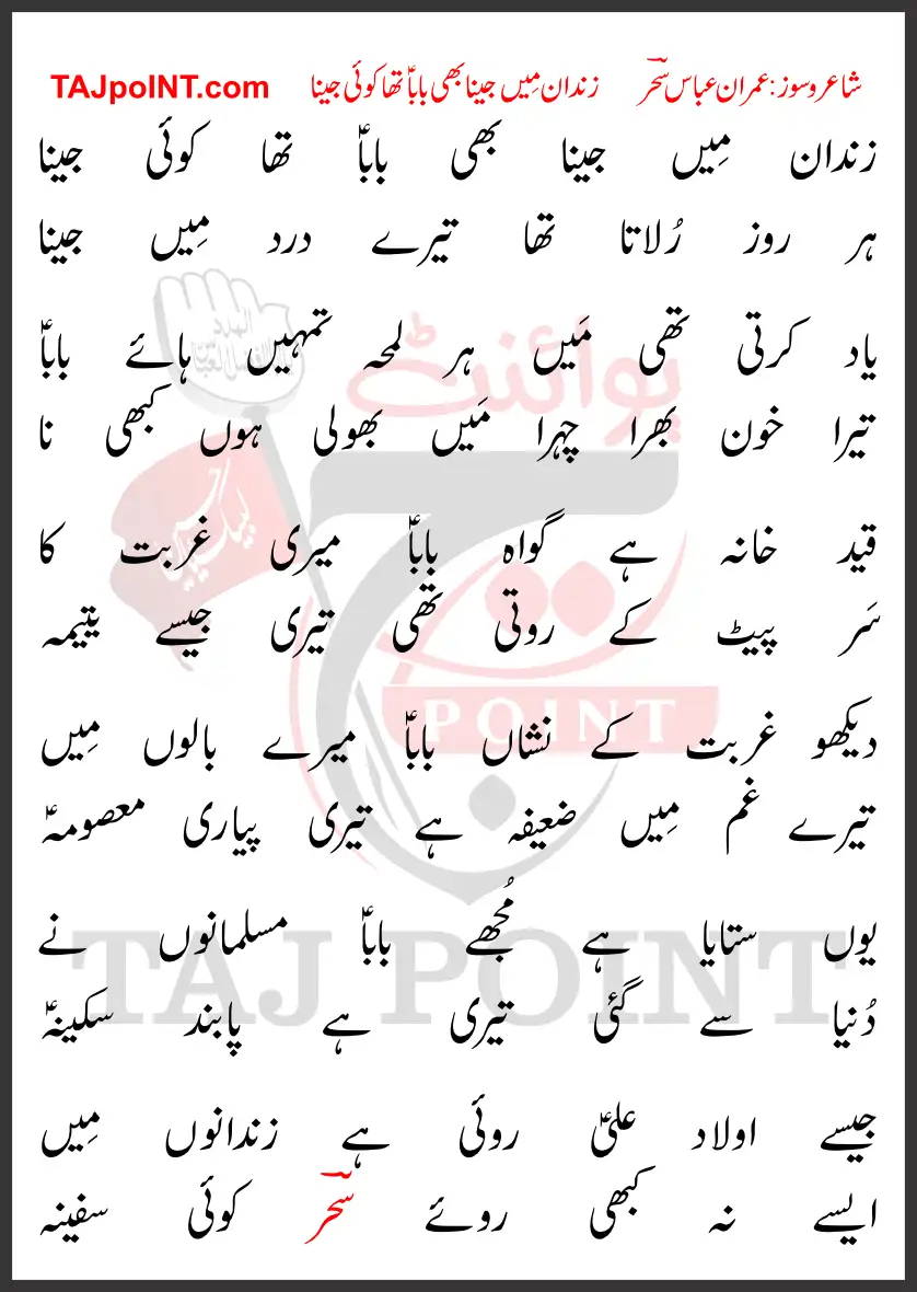 Zindan Mein Jeena Bhi Baba Tha Koi Jeena Lyrics 2021 Latest Lyrics in Urdu